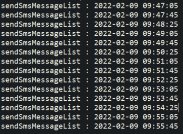 이와 같은 문제를 방지하기 위하여 Quartz에서는 동시실행 여부를 제어할 수 있는 property 요소를 제공하는데, 그것이 바로 concurrent 이다. 하단과 같이 값을 true에서 false로 변경해보고 다시 실행해보면, 중복 실행이 되지 않는 것을 확인할 수 있다.