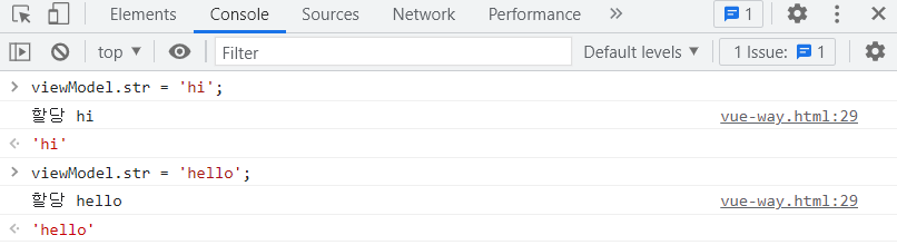 ์ด๋ฌํ ํน์ฑ์ Vue์ Reactivity ์ฆ, Vue์ ๋ฐ์์ฑ์ด๋ผ๊ณ ํ๋ค.