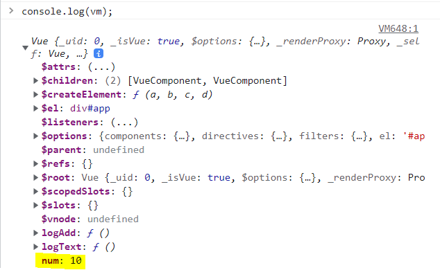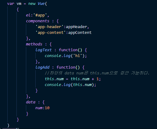 this.num; //10을 가리킴. this는 Vue를 바라본다.